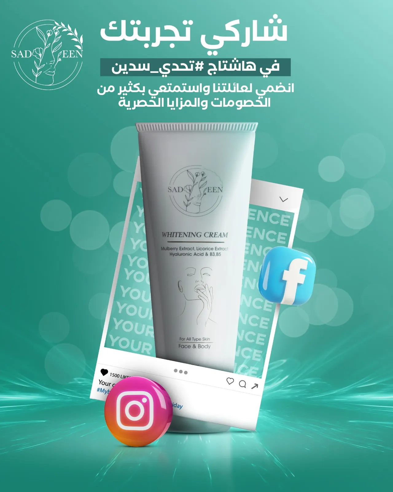 Discover the secret to radiant, even-toned skin with Sadeen Organic’s advanced Whitening Cream. A powerful formula that targets dark spots and hyperpigmentation, visibly giving you brighter, purer skin, with deep, long-lasting hydration